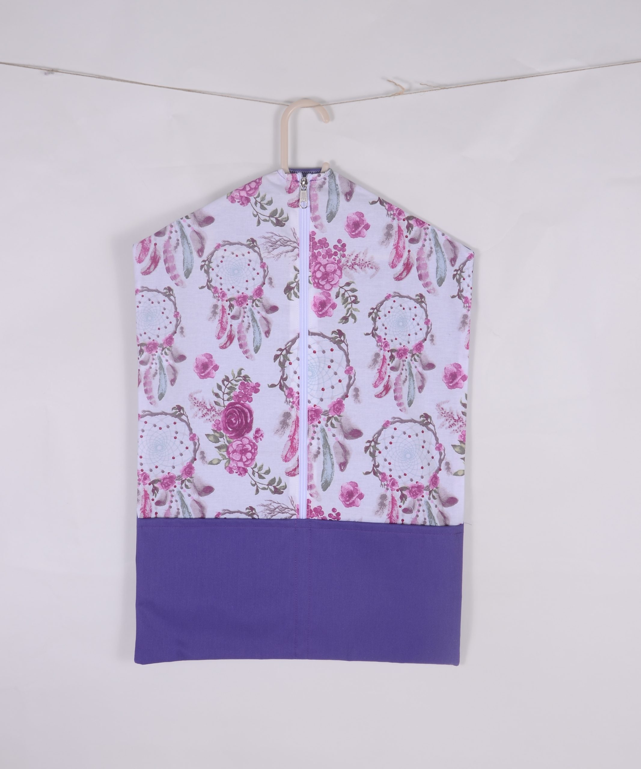 Vállfát adok hozzá. A mintás vászont egy erősebb egyszínű vászonnal párosítjuk, hogy a tartósabb legyen a zsák.