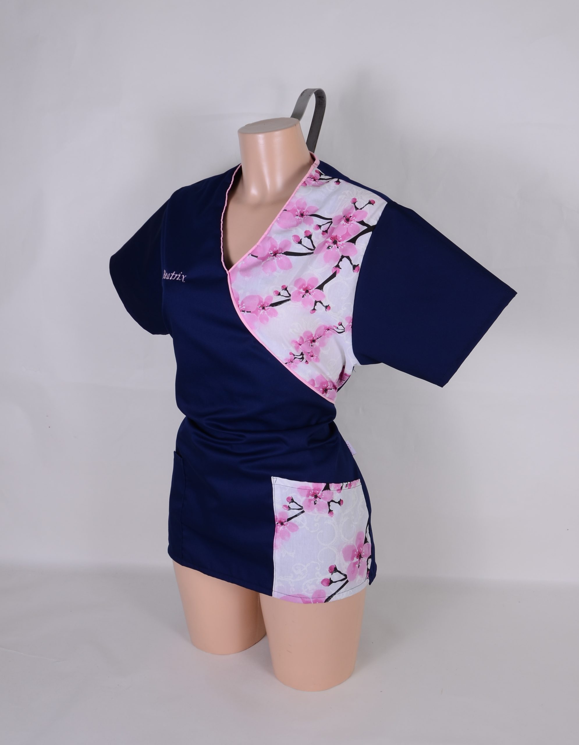 Beáta munkaruha tunika- cseresznyevirág minta – Rendelésre