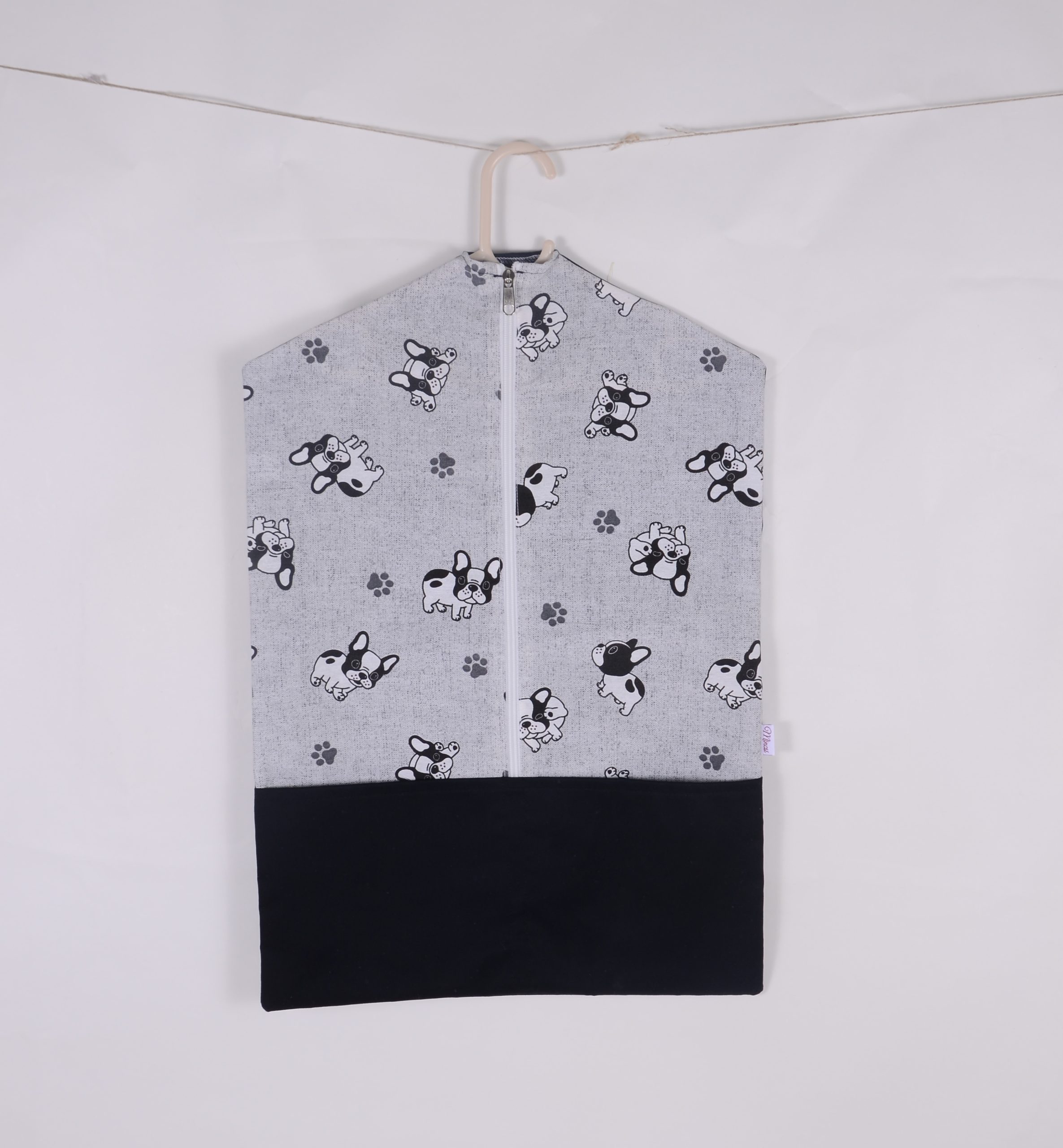 Vállfát adok hozzá. A mintás vászont egy erősebb egyszínű vászonnal párosítjuk, hogy a tartósabb legyen a zsák.