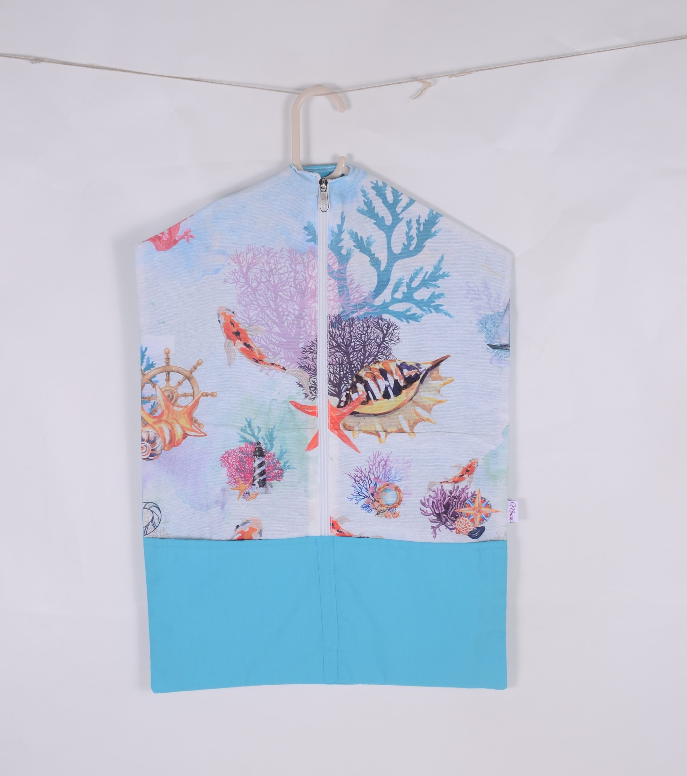 Vállfát adok hozzá. A mintás vászont egy erősebb egyszínű vászonnal párosítjuk, hogy a tartósabb legyen a zsák.