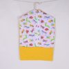 Vállfát adok hozzá. A mintás vászont egy erősebb egyszínű vászonnal párosítjuk, hogy a tartósabb legyen a zsák.