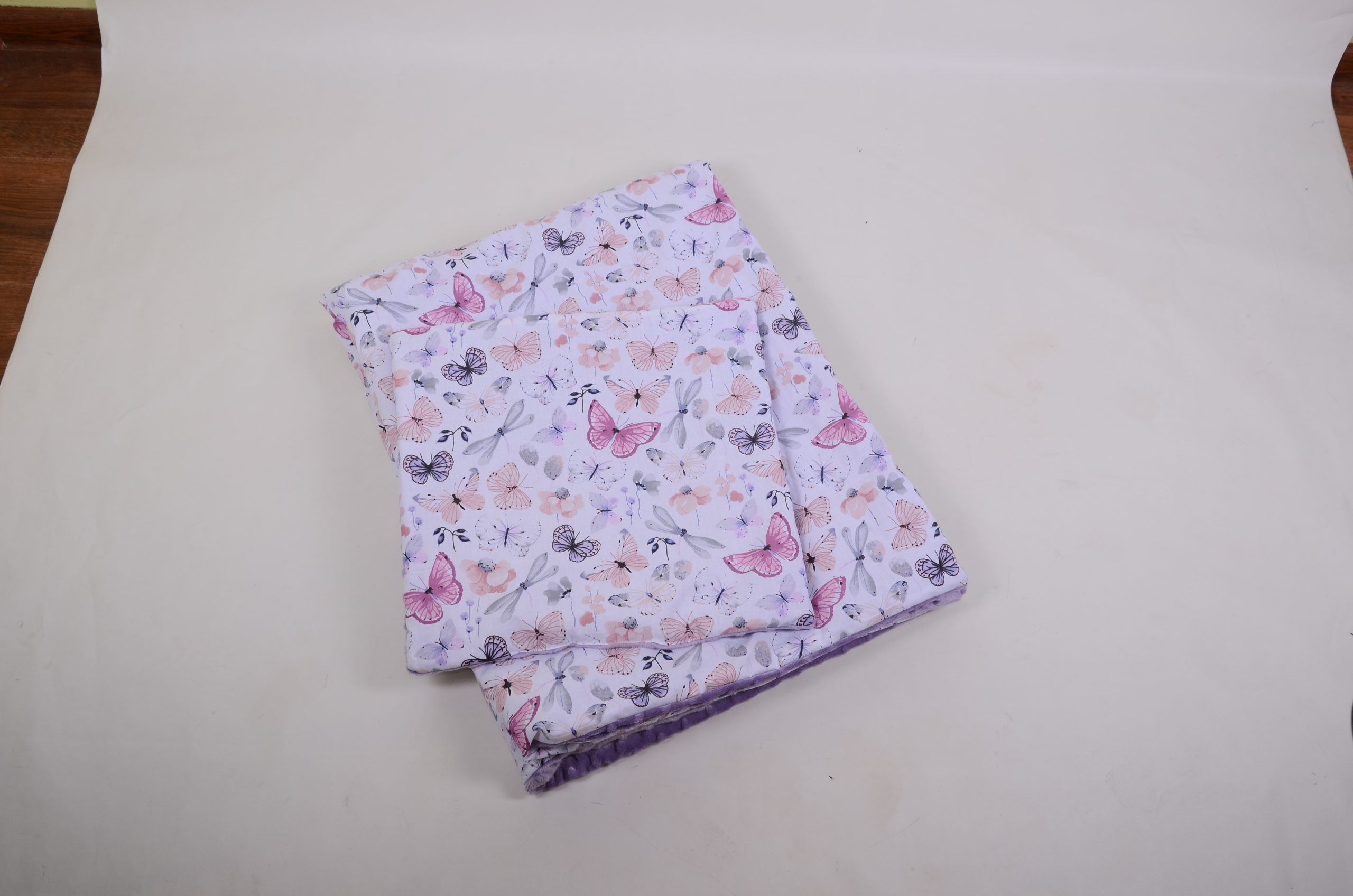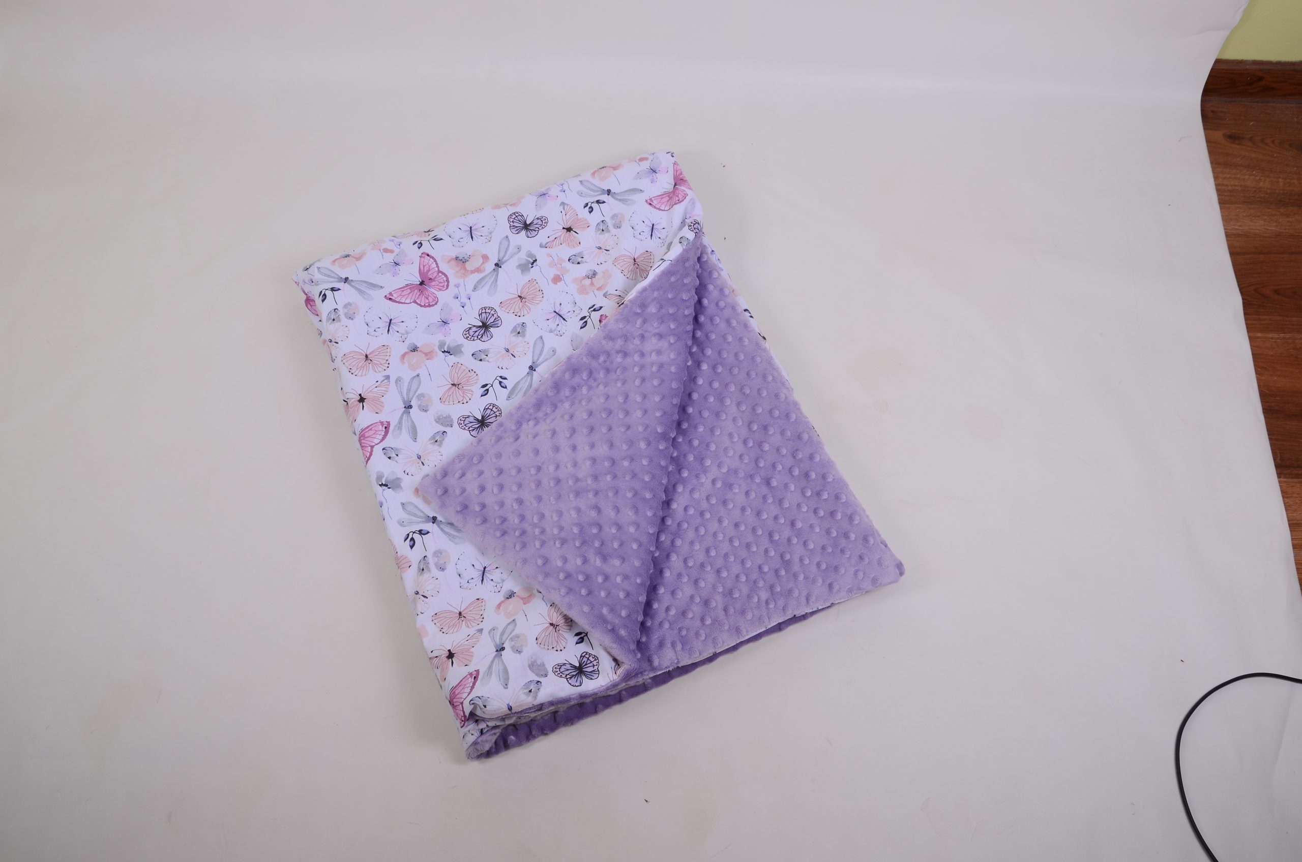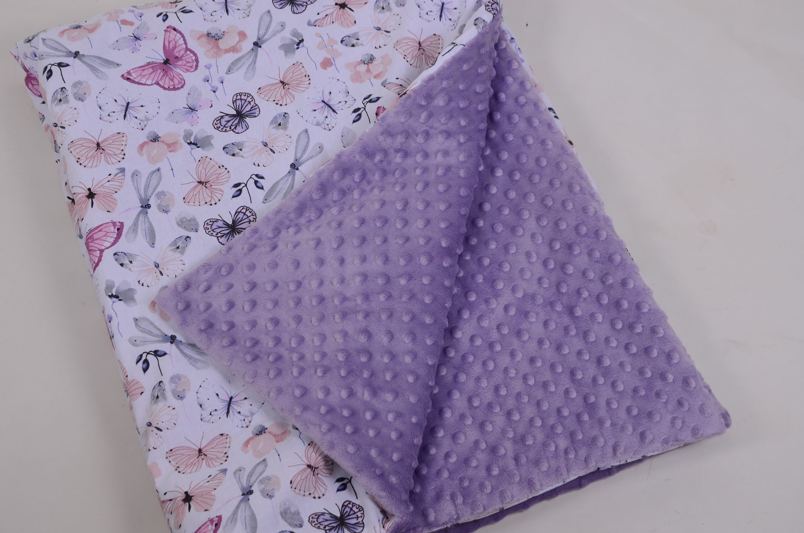 A takaró egy oldal mintás pamutvászon, egy oldal puha minky/softtal és egy vlies béléssel készülnek. A 3 réteget összevarrjuk, így a bélés nem fog csúszkálni. A párna ugyanúgy készül, mint a takaró.