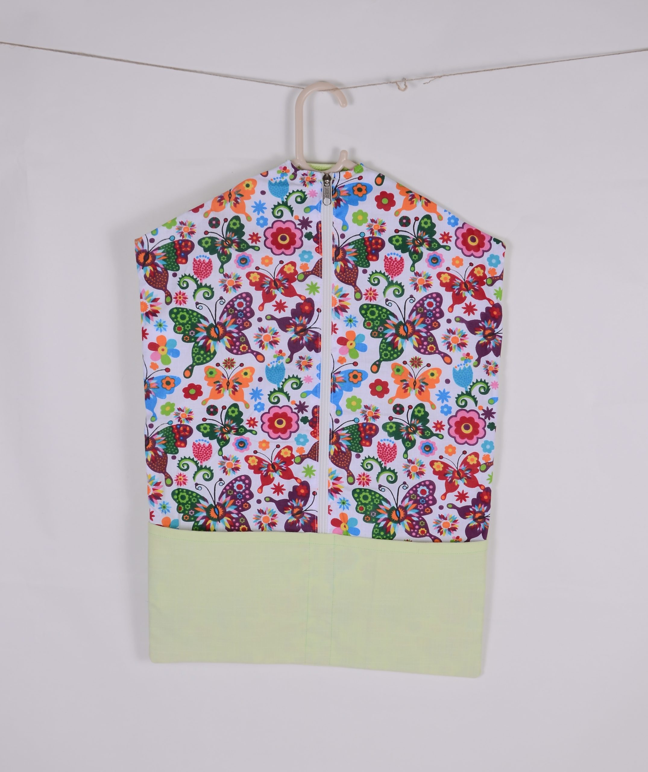 Vállfát adok hozzá. A mintás vászont egy erősebb egyszínű vászonnal párosítjuk, hogy a tartósabb legyen a zsák.