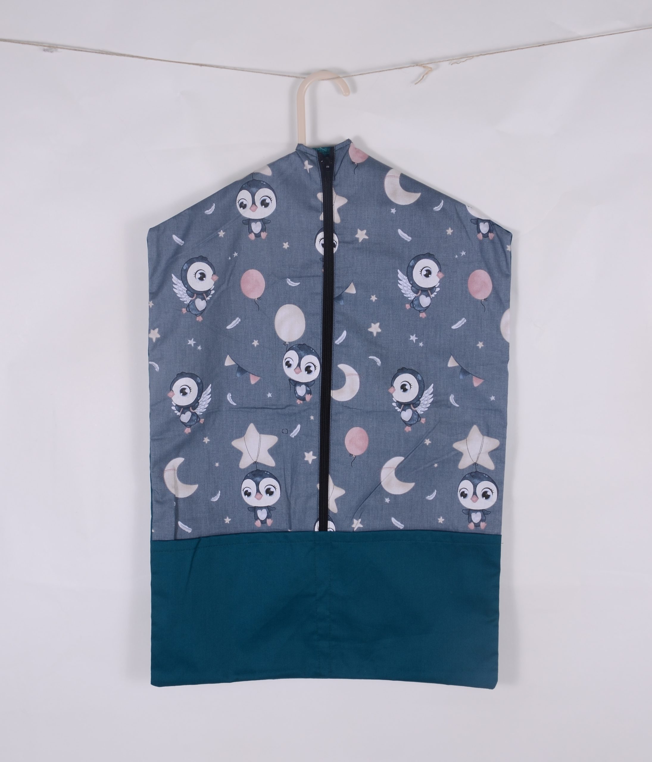 Vállfát adok hozzá. A mintás vászont egy erősebb egyszínű vászonnal párosítjuk, hogy a tartósabb legyen a zsák.