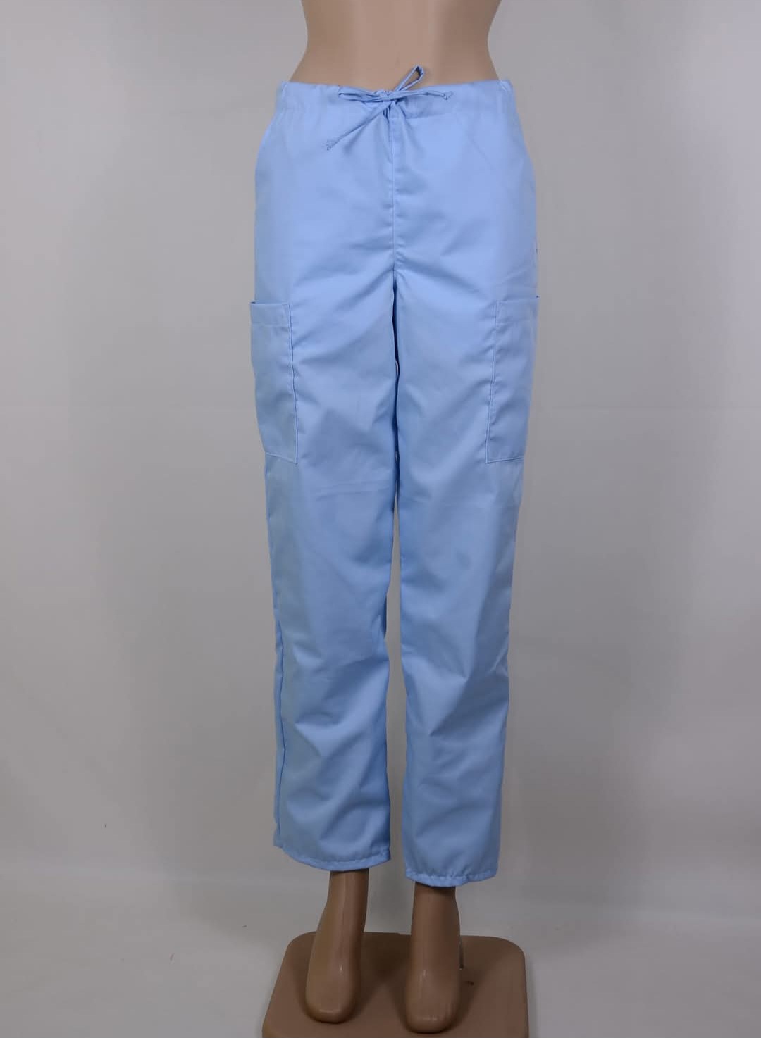 A nadrágok uniszex egyenes szárú, lazább fazonúak, 2 francia zsebbel és 2 oldalt felvarrt zsebekkel. Derekán elől megkötővel és a hátulján gumival készítjük.